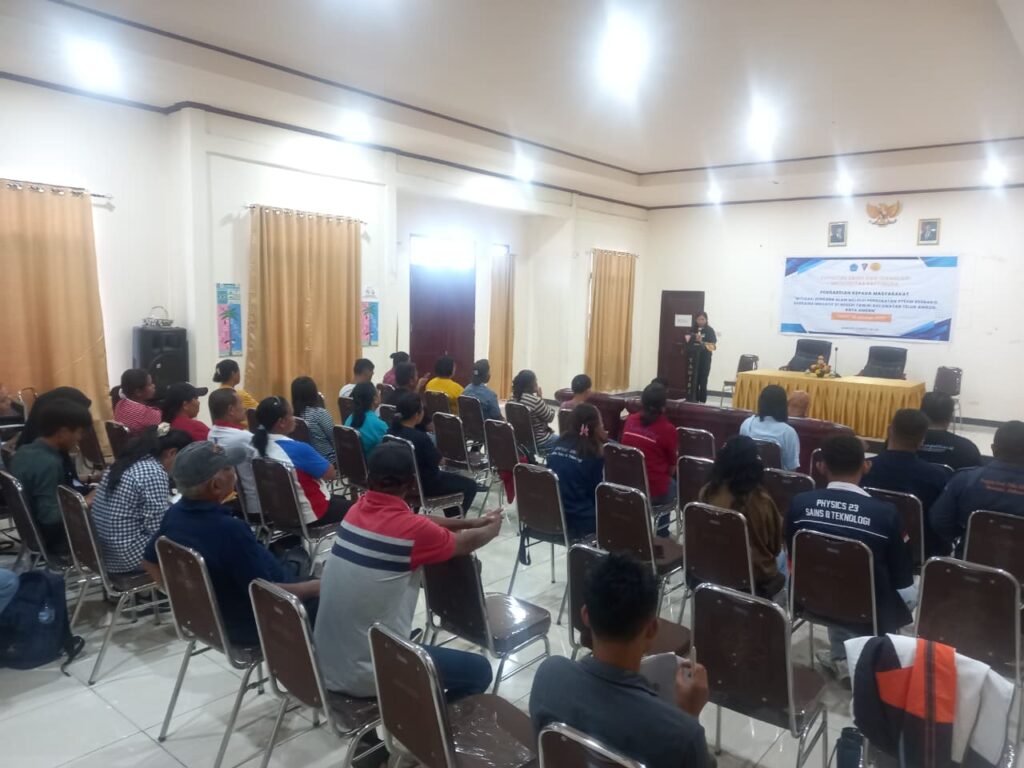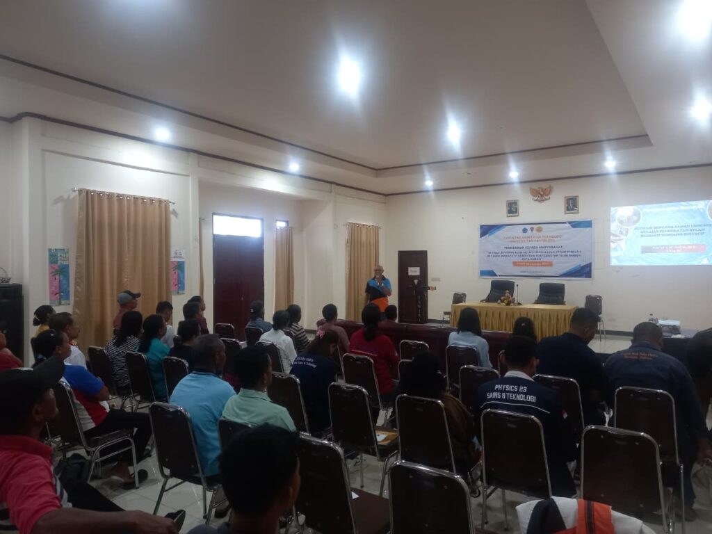 Bertempat di Aula Pertemuan Negeri Tawiri, Tim PkM melakukan Pelatihan Mitigasi Bencana dengan menghadirkan tiga narasumber utama yang memberikan materi sesuai dengan bidang keahliannya. Prof. Dr. Ir. Matheus Souisa, M.Si menyampaikan topik “Mitigasi Gerakan Tanah Menggunakan Early Warning System”, yang menekankan pentingnya sistem peringatan dini berbasis sains dan teknologi dalam meminimalkan risiko longsor di kawasan rawan bencana.