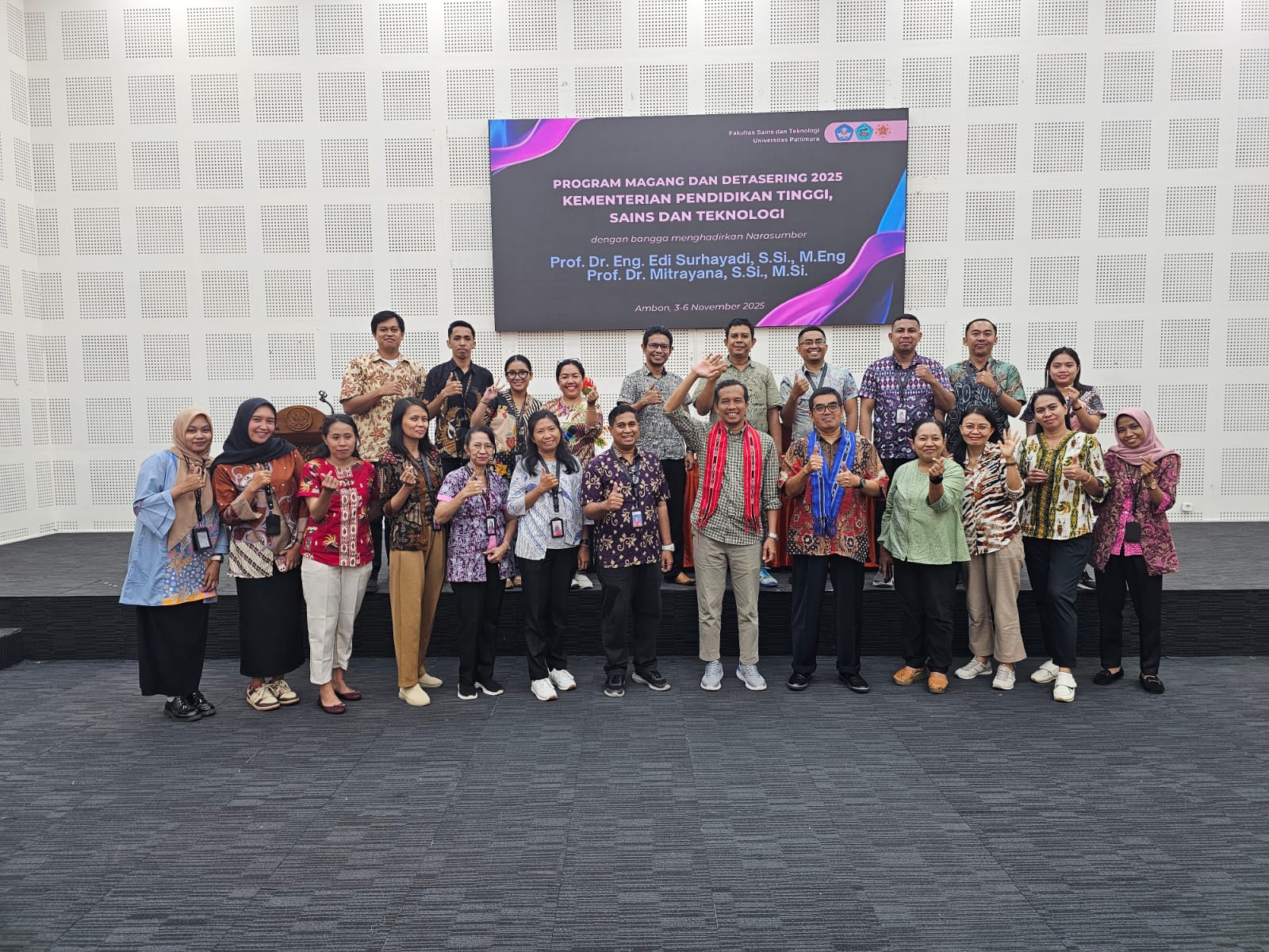 Ambon, 3–6 November 2025 — Jurusan Fisika Fakultas Sains dan Teknologi (FST) Universitas Pattimura (Unpatti) berhasil menyelenggarakan kegiatan Detasering 2025 dengan dukungan penuh dari Departemen Fisika, FMIPA Universitas Gadjah Mada (UGM). Program strategis yang berlangsung selama empat hari ini bertujuan utama untuk mengakselerasi peningkatan materi pembelajaran, topik penelitian, hingga mutu tata kelola akademik di Jurusan Fisika Unpatti. Dua pakar UGM yang berperan sebagai Detaser adalah Prof. Dr. Eng. Edi Suharyadi, M.Eng., dan Prof. Dr. Mitrayana, M.Si. Kegiatan ini secara resmi dibuka oleh Dekan FST Unpatti, Dr. H. J. Wattimanela, M.Si., yang secara khusus mengharapkan program ini dapat meningkatkan kinerja gugus jaminan mutu serta kesiapan program studi menghadapi akreditasi.