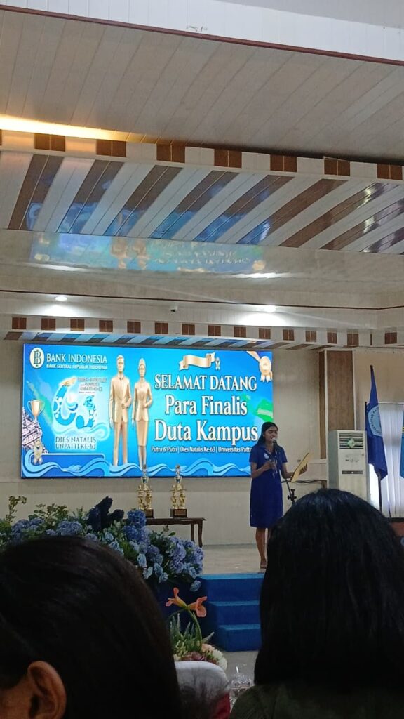 Ambon, 16 April 2026 – Prestasi membanggakan kembali diraih oleh mahasiswa Program Studi Fisika, Fakultas Sains dan Teknologi (FST) Universitas Pattimura. Brinet Claudia Tuarissa (NIM. 202377001) yang menjadi perwakilan Fakultas Sains dan Teknologi berhasil keluar sebagai Juara 1 dalam ajang pemilihan Duta Kampus Universitas Pattimura dalam rangka perayaan Dies Natalis Unpatti ke-63.